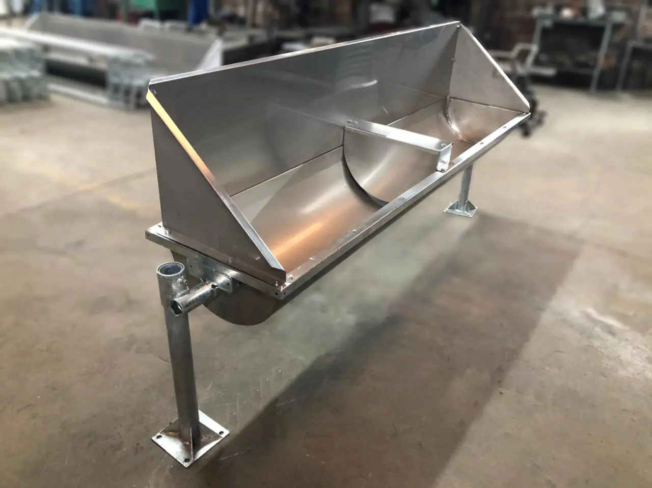 ● Aço inox 304; ● Proteção superior / lateral integrada; ● Design com cantos arredondados e superfície lisa; ● Fixação reforçada no solo ou parede; ● Ideal para galpões leiteiros e free stall.