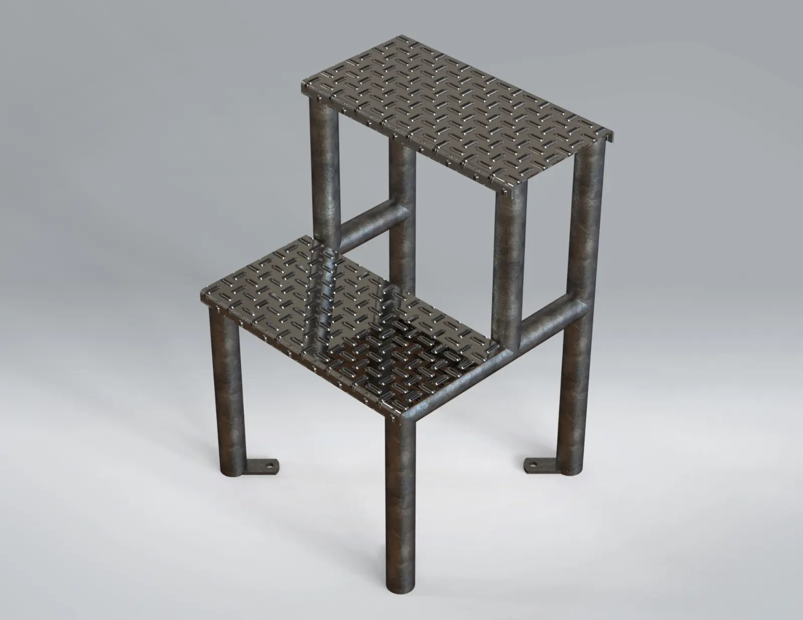 ● Estrutura em aço galvanizado; ● Degraus antiderrapantes; ● Fixação segura; ● Dimensões bem adaptadas aos desníveis comuns; ● Projeto compacto.